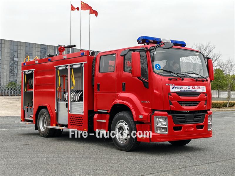 Water≥60 m,Foam≥48mThis article introduces a medium-sized foam fire truck based on the Isuzu FVZ GIGA high-performance chassis. This Banama Isuzu FVZ fire truck mounted foam tanker boasts powerful performance and high functional integration, combining a 5000L water tank and a 1000L stainless steel foam tank. It supports both water and foam firefighting modes and is equipped with a CB10/40 fire pump, PL8/32 fire monitor, and other firefighting equipment. It can remotely and accurately target fire sources with rapid response, making it suitable for rapid firefighting and initial control of fires in urban communities, towns, industrial parks, and common chemical fires.