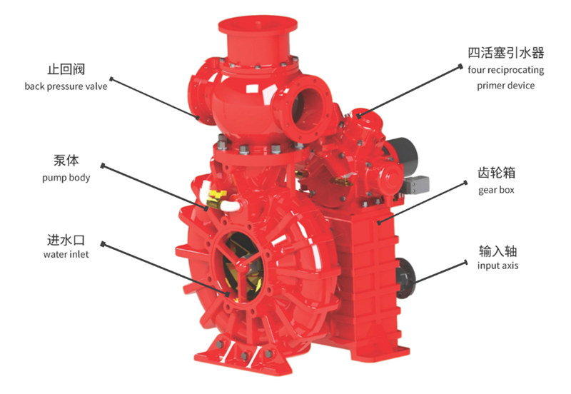 ●This fire pump boasts powerful suction and discharge capacities, making it suitable for a variety of medium- and large-sized firefighting vehicles and emergency firefighting equipment.