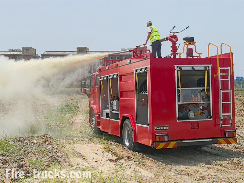 | Fire truck with PF5-15 fixed dry powder monitor | PF5-15 fixed dry powder monitor testing |