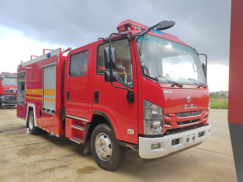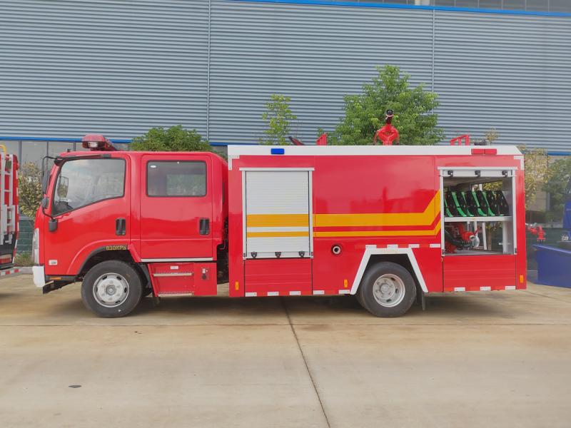 tanker material PP, 4X4, 6X6 drive, RHD driveCB10/30 Fire pump rescue truck ISUZU, called as Isuzu foam fire engine or Foam rescue fire vehicle Isuzu, as a medium-sized firefighting vehicle, the 3-cubic-meter foam fire truck combines maneuverability and firefighting effectiveness, making it suitable for small- to medium-sized fires and complex terrain scenarios.