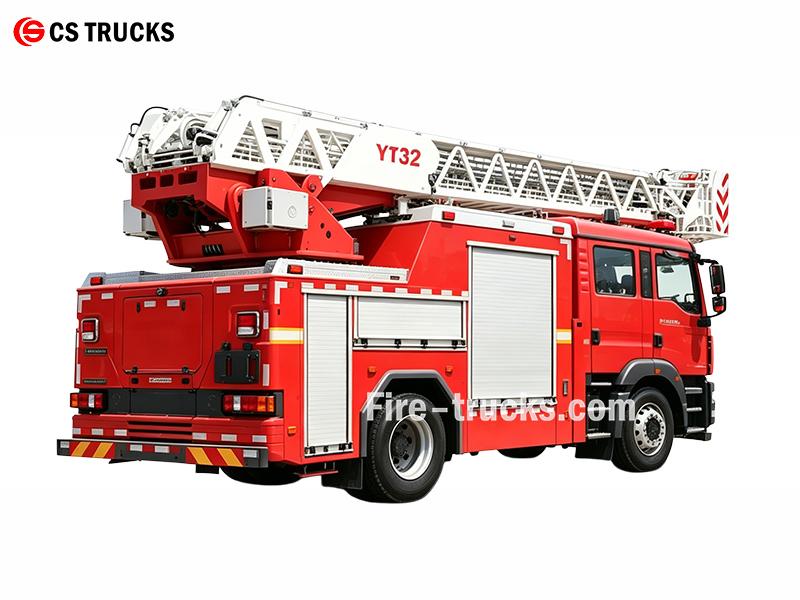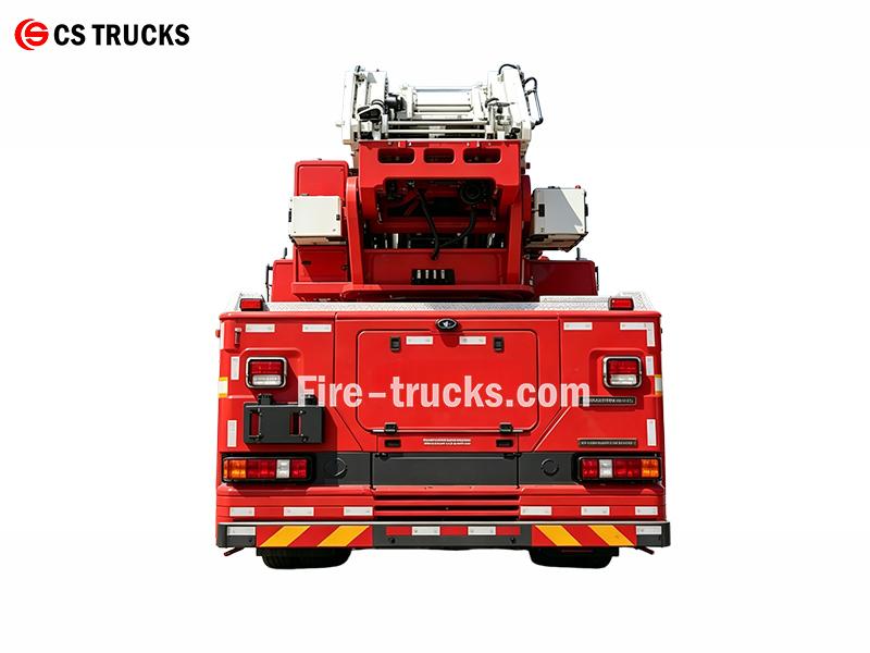 25 mThe HOWO 25m aerial ladder fire fighting vehicle (also called aerial platform fire truck, ladder fire rescue truck, or elevated fire fighting unit) is built on a HOWO 4×2 chassis with a 257 kW MC07H.35-60 engine. This HOWO 25m CAFS fire rescue tender features a 4-section telescopic ladder reaching 25m working height and 15m outreach, plus a 2,000L water tank and 350L foam tank. A CB10/60-MBP fire pump delivers 3,600 L/min, and the roof monitor has a 65m range. The 300 kg work platform includes an intelligent auto-leveling system. Safety features include overload protection, tilt cutoff, collision avoidance, and a 5m LED mast light for night operations—making it a reliable choice for high-rise fire rescue, industrial facility protection, and emergency response missions.