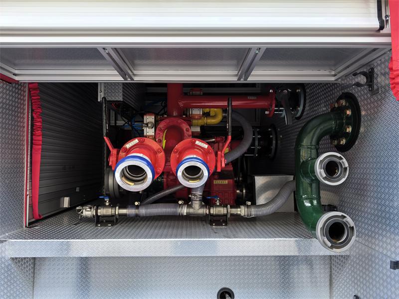 The rear pump room is equipped with a CB10/60-RS fire pump and control panel. A PL8/48 fire monitor is mounted on the roof, offering long range, wide coverage, and adjustable angle. This fire rescue trucks integrates fire and rescue functions, and is particularly adept at extinguishing Class B fires such as oil fires, making it a core piece of equipment for ensuring urban and industrial safety.
