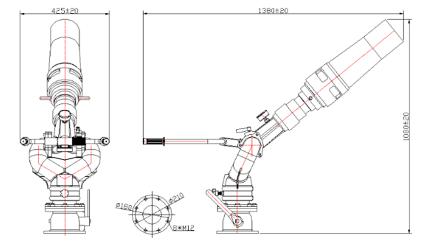 | Fire Monitor Model | Flow | Range | Rated Pressure | Pitch Rotation | Horizontal rotation | Weight |