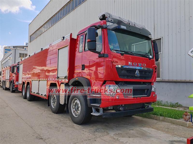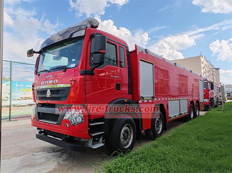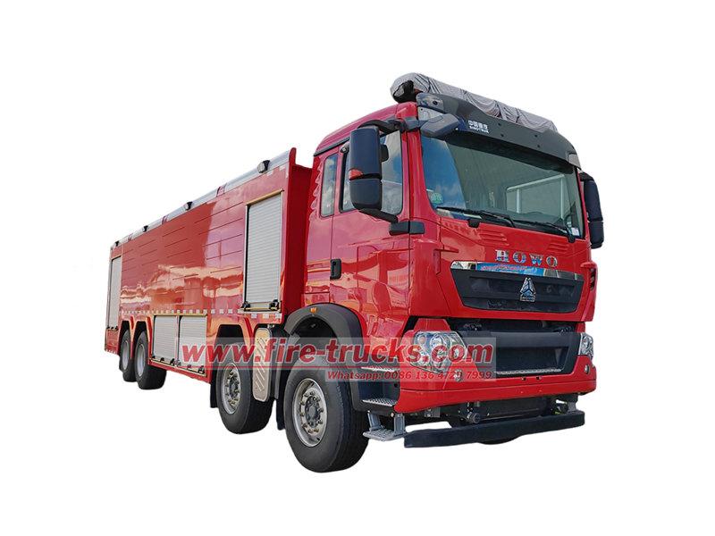 HOWO 8×4 foam fire truck is a large emergency rescue vehicle built on a SINOTRUK HOWO heavy-duty chassis, integrating a water tank, foam tank, fire pump, and various firefighting and rescue equipment. Powered by a 460 HP engine, it features a 20000L water tank and a 4000L foam tank, equipped with a high-flow fire monitor capable of jetting water or foam up to 75 meters. With powerful performance, excellent mobility, and comprehensive equipment, it efficiently tackles fire suppression tasks in urban and industrial areas.