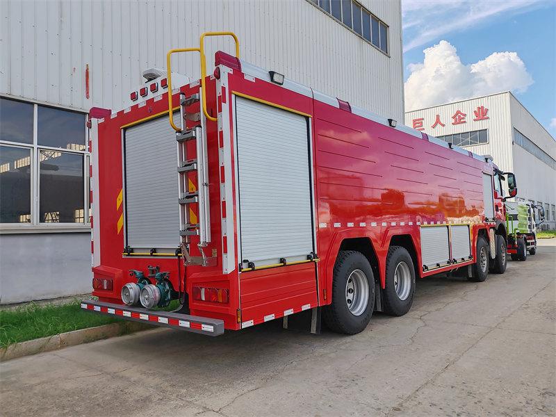 tanker material PP, 4X4, 6X6 drive, RHD drive is optionalHOWO 8×4 foam fire truck is a large emergency rescue vehicle built on the HOWO 8×4 drive heavy-duty ZZ5447TXFV chassis. Customized for the Philippine market, it is equipped with a 460 HP MC11 Series Euro V engine. Its core strength lies in its exceptional liquid-carrying capacity, simultaneously storing 20 cubic meters of water and 4 cubic meters of foam. Integrated with a CB10/80 normal-pressure fire pump and a PL8/64 fire monitor with a range exceeding 75 meters, it provides an efficient and reliable mobile firefighting platform to address severe local fire scenarios.